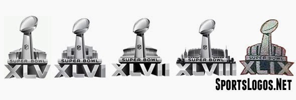 The only differences between the last four Super Bowl logos have been the number and the image of the stadium hosting the game in the background. And I bet you can guess what the Super Bowl XLIX logo looks like, too. Here's a great shot of the last four (since they began this standardized logo thing), along with a projection for next year's: